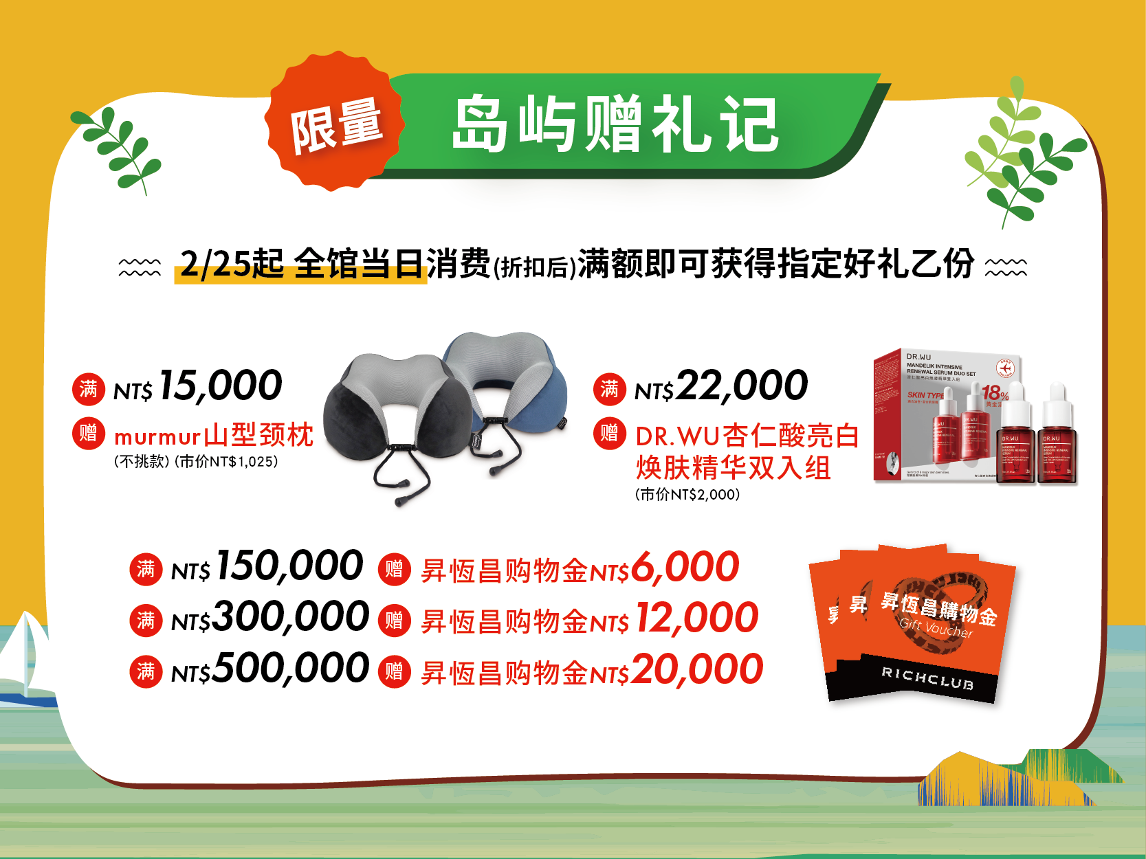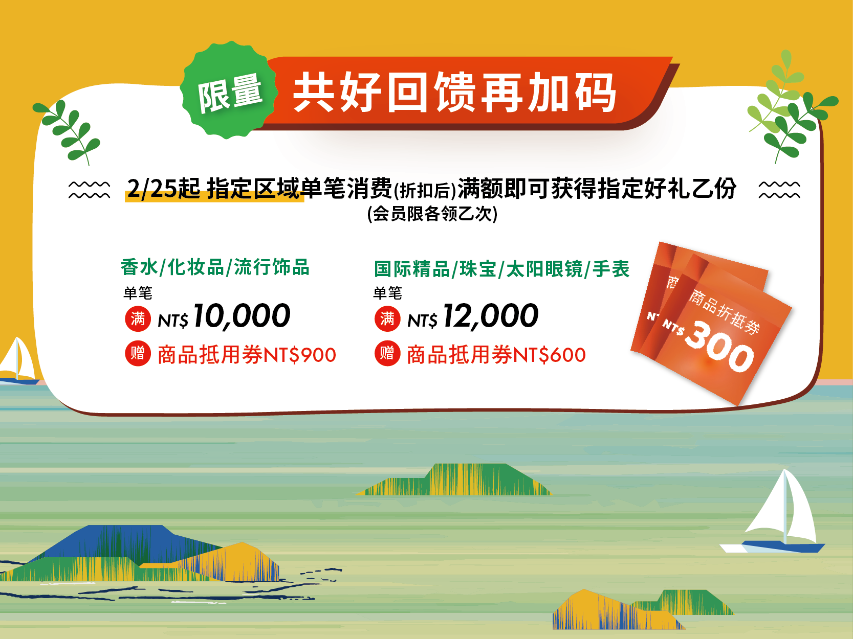 02/25 起 单笔消费满NT$500(折扣后)