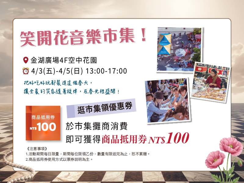 於市集攤商消費即可獲得商品抵用券NT$100